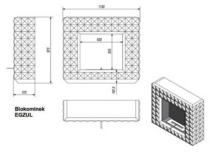 Инструкции, чертежи, документы - Биокамин Kratki Egzul Swarovski, черный матовый