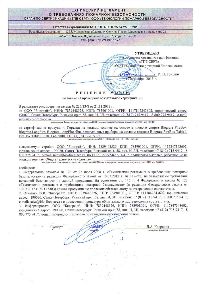 Инструкции, чертежи, документы - Круглый автоматический биокамин Biograte SmartFire 700 round