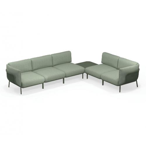 Cabla представляет собой модульную сборную систему мягкой мебели, позволяющую создавать множество конфигураций с использованием всего трех модулей: одного линейного сиденья, шезлонга и подлокотника. Металлическая основа конструкции из нержавеющей стали, продукт многолетнего опыта EMU, сочетается с комфортом и цветовым разнообразием тканей для наружного использования, достигая максимальной композиционной и выразительной пластичности в широком диапазоне настроек, даже для морского побережья. Кофейные столики с основанием из проволочной сетки различных форм и размеров дополняют коллекцию, предлагая множество вариантов проведения встреч с семьей и друзьями.