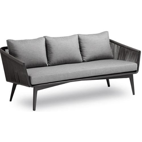 Плетение из роупа является отличительным элементом дивана Diva, создавая привлекательную и текстурированную отделку, охватывающую металлический каркас. Диван Diva в комплекте с креслами из этой же коллекции идеально подходит для обстановки лаунж зоны на открытом пространстве.