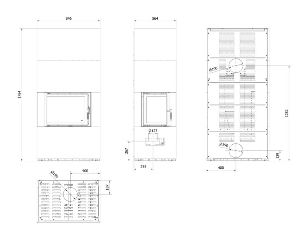 Инструкции, чертежи, документы - Каминокомплект Kratki Pro Floki в облицовке Ossido Nero, угловое стекло справа
