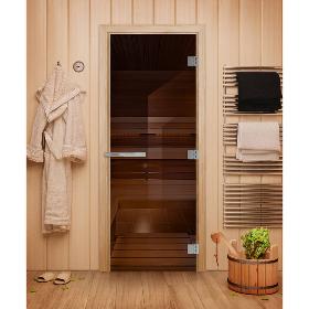 Дверь для бани DoorWood Эталон Бронза 2000х800, 10 мм, 3 петли, коробка - листв. порода