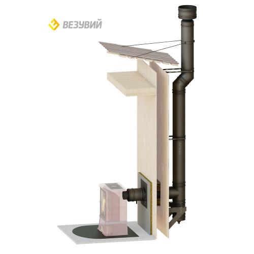 Комплект дымохода Везувий, д. 200 мм, нержсталь, черный, проход через стену, задний выход (высота 5 м.)