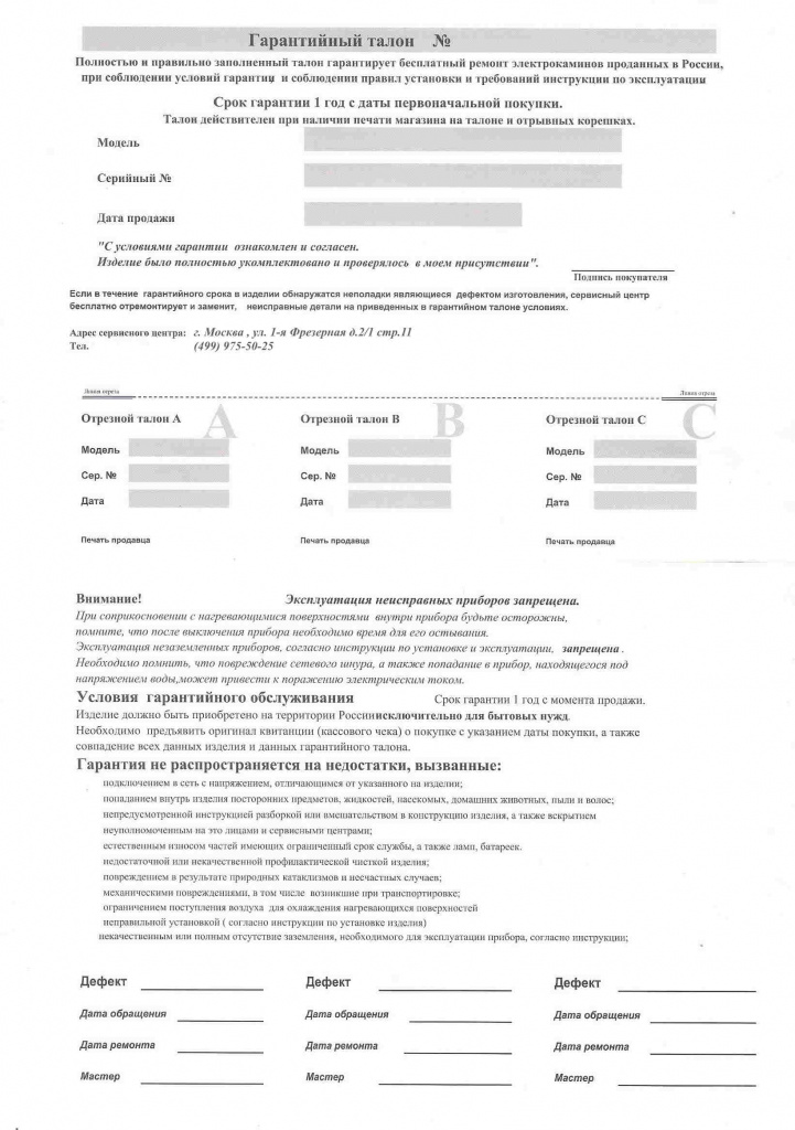Инструкции, чертежи, документы - Электроочаг 3D Glenrich Capoeira