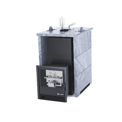 Банная печь ИзиСтим Анапа в трехстороннем кожухе Талькохлорит с газовой горелкой (САБК-40)