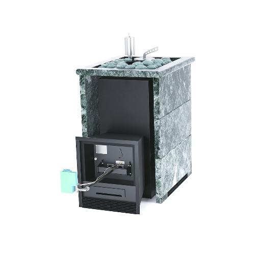 Банная печь ИзиСтим Анапа в трехстороннем кожухе Змеевик с открытым верхом и газовой горелкой (ГГУ-40)