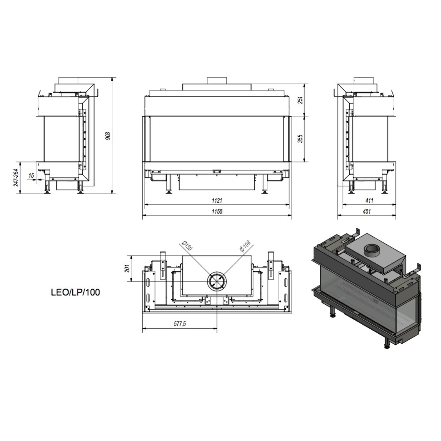 Газовый камин Kratki Pro Leo/LP/100/G31/37MBAR (магистральный газ)