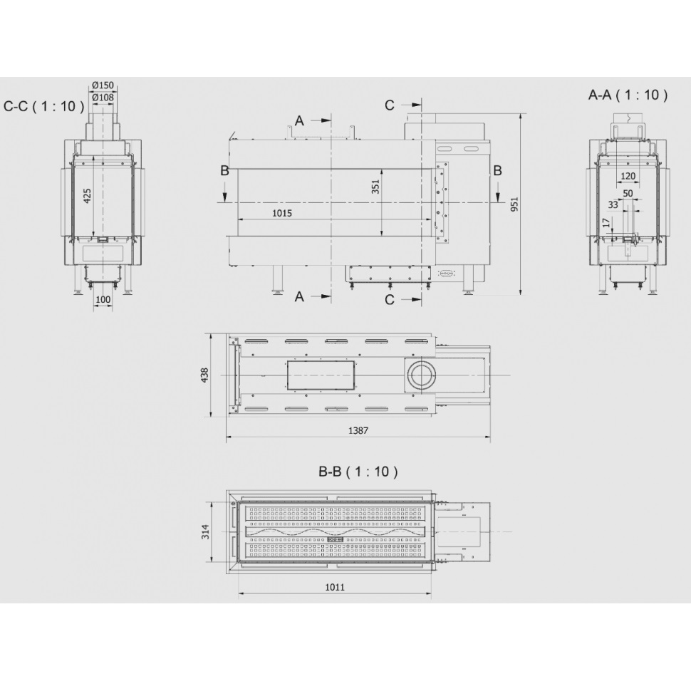 - Диаметр дымохода, мм 150