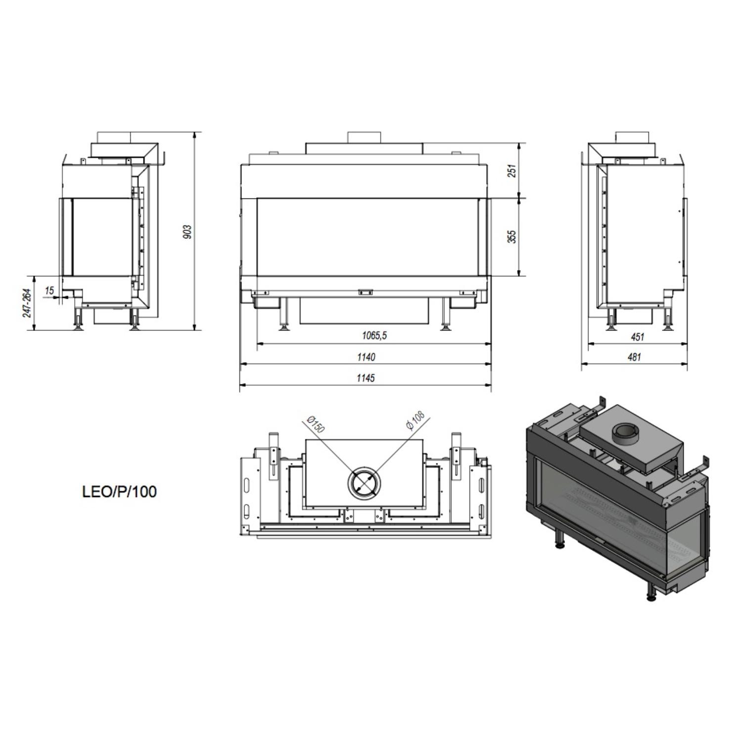 Газовый камин Kratki Pro Leo/100/G20 (магистральный газ) (угол справа)