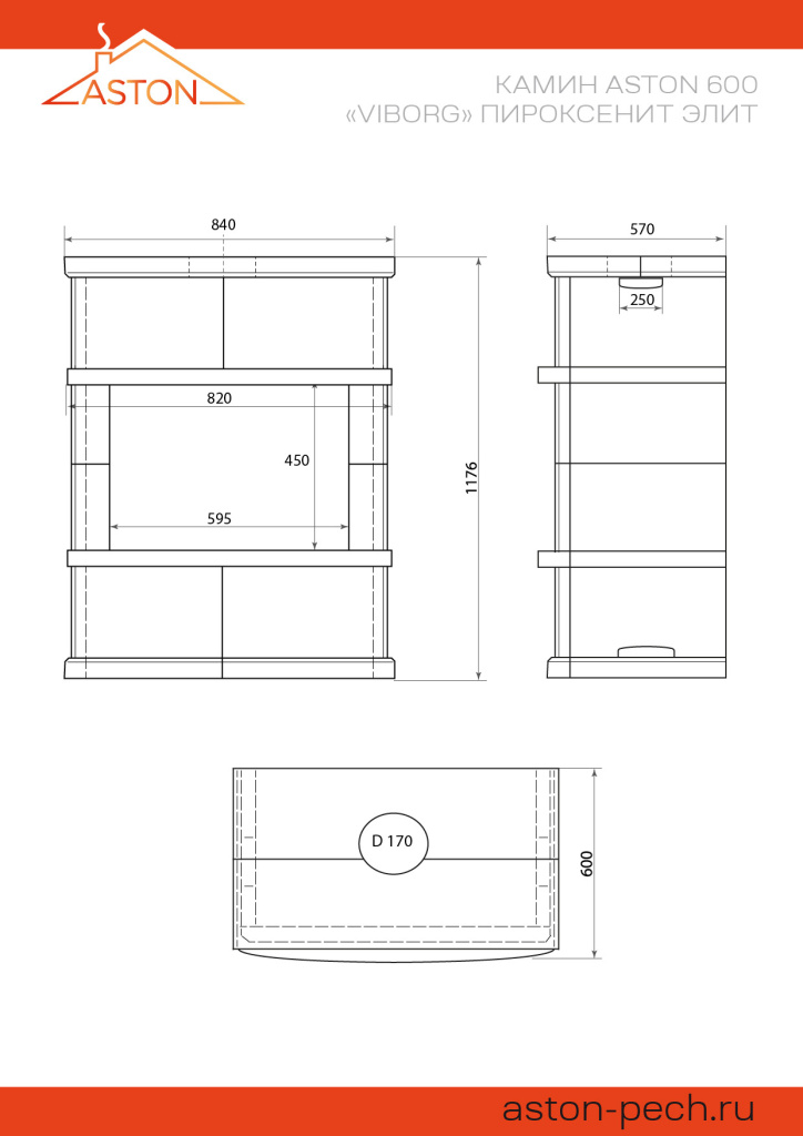 Инструкции, чертежи, документы - Готовый камин Aston 600 Vyborg Н-1176 Пироксенит Элит
