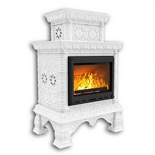 Готовый камин КимрПечь Кострома двухъярусный центральный с топкой Астов К7454 (белый)