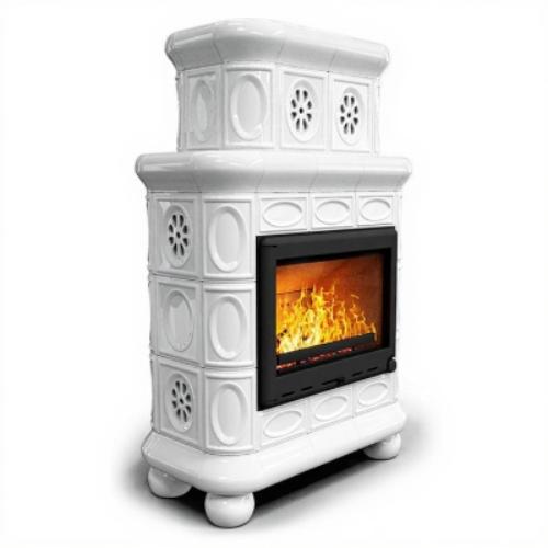 Готовый камин КимрПечь Медальон двухъярусный центральный с топкой Астов К7454 (белый)