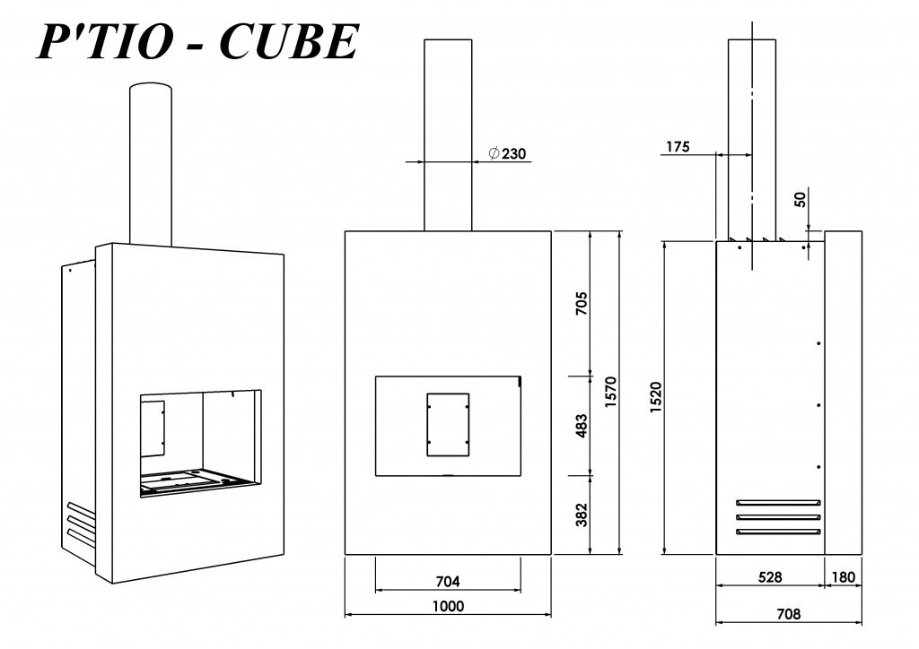 Инструкции, чертежи, документы - Готовый камин Polyflam P'tiot Cube 520