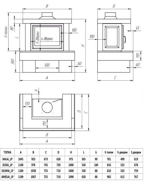 Инструкции, чертежи, документы - Каминная облицовка FireBird Байкал (для топки Amelia/LP) (стекло слева-справа)