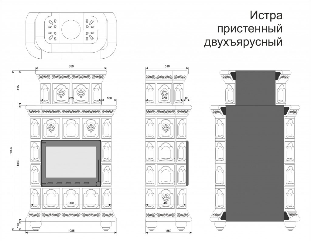 Инструкции, чертежи, документы - Облицовка камина КимрПечь Истра пристенный-двухъярусный для топок 600