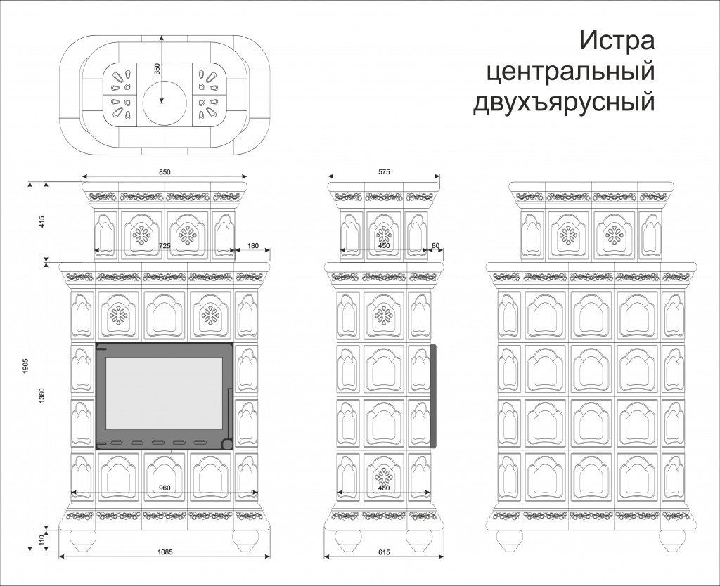 Инструкции, чертежи, документы - Облицовка камина КимрПечь Истра центральный-двухъярусный для топок 600