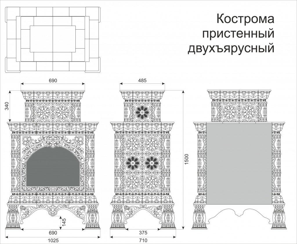 Инструкции, чертежи, документы - Облицовка камина КимрПечь Кострома-Д пристенный-двухъярусный