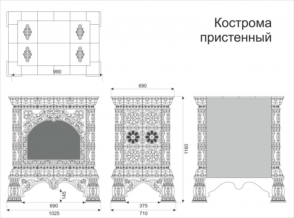 Инструкции, чертежи, документы - Облицовка камина КимрПечь Кострома Д пристенный