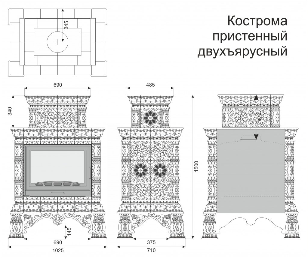 Инструкции, чертежи, документы - Облицовка камина КимрПечь Кострома пристенный-двухъярусный для топок 600