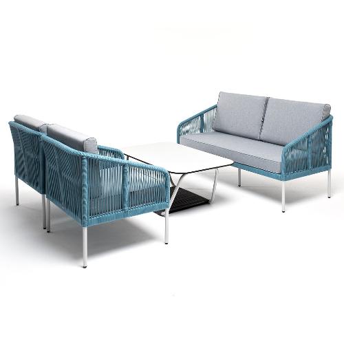 Лаунж-зона 4SiS Канны 4-местная из роупа со столом Глория (молочный), каркас алюминиевый светло-серый, роуп бирюзовый