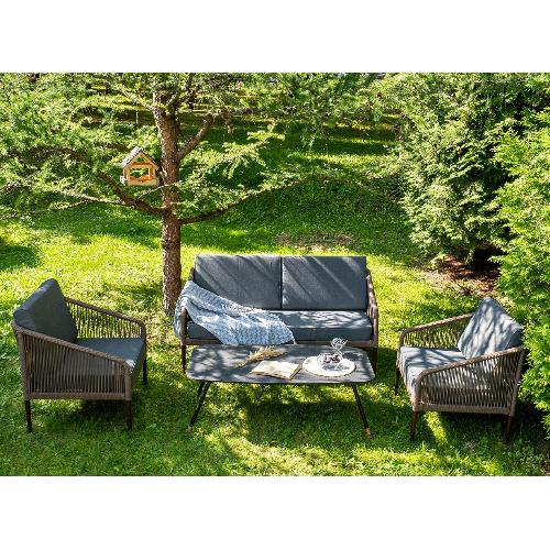 Лаунж-зона 4SiS Канны 4-местная из роупа со столом Верона (серый гранит), каркас алюминиевый коричневый, роуп коричневый