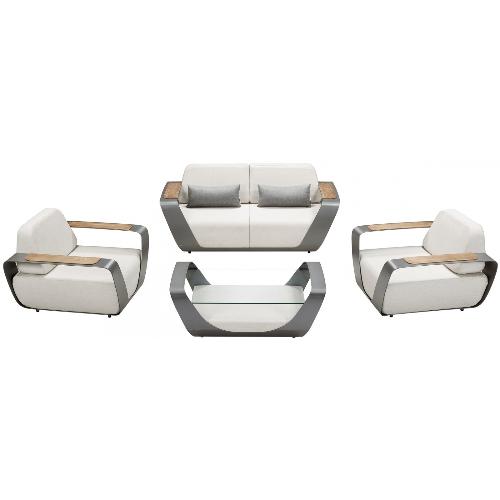 - Подлокотники кресел и дивана украшает тик. Тиковая древесина десятилетиями используется в производстве садовой мебели и ценится за ее высокую устойчивость к атмосферным воздействиям. Древесина тика содержит натуральные масла, которые служат естественным защитным слоем. Тик не «ржавеет» и, таким образом, не подвергается коррозии на поверхности дерева при контакте с металлами. Срок службы тикового дерева намного больше, чем у других пород дерева. Все эти преимущества и свойства тикового дерева делают его идеальным материалом для изготовления садовой мебели.