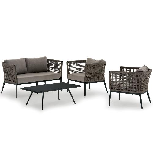 Комплект Cuba состоит из двухместного дивана, двух кресел и журнального столика, каркас которых выполнен из алюминия с порошковым покрытием. Кресла и диван имеют низкую спинку, которая создает одно целое с подлокотниками благодаря канатному плетению из полиэстера Ø4 мм. Объемные и мягкие подушки, созданные для максимизации комфорта, выполнены из олефина, устойчивого к пятнам и ультрафиолетовому излучению. Коллекция Cuba идеально подходит для тех, кто хочет произвести впечатление с помощью дизайнерской мебели в интерьере и на открытых площадках.