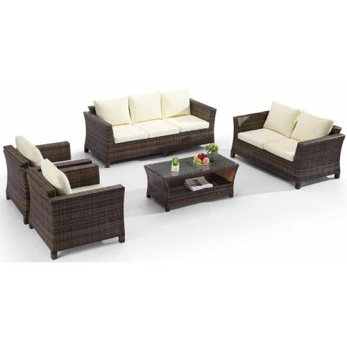 Комплект мебели Fantasy не оставит равнодушным никого. Сочетание коричневого плетения ротанга и бежевых подушек придает этой мебели экзотический и уютный внешний вид.
