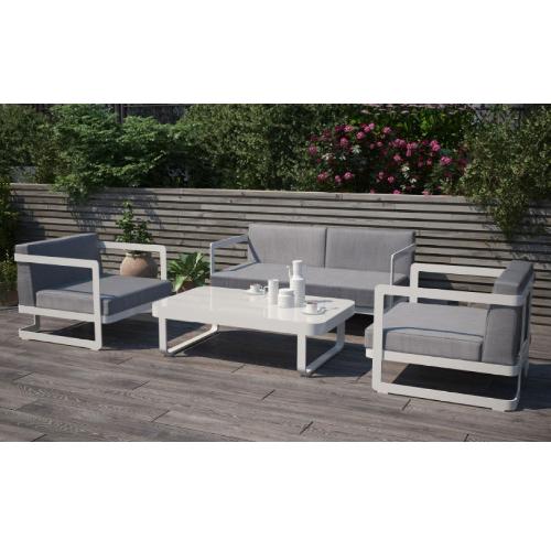 Цвет: каркас белый / подушки серые / столешница белая глянцевая