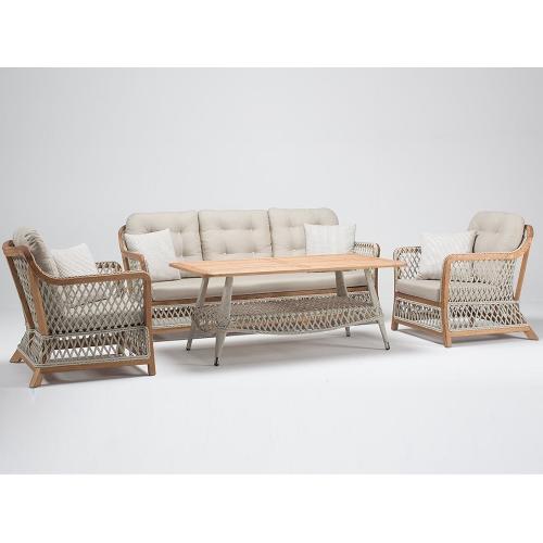 Комплект плетеной лаунж мебели Melisa – это изумительное решение для обустройства зоны отдыха как в сфере Contract, так и в частном проекте. Благодаря деревянному каркасу мебель обладает прочностью и надежностью, а за счет плетения из полиэтиленового волокна ее можно использовать на открытых пространствах, не боясь потери эстетического привлекательного внешнего вида, и с сохранением целостности конструкции. Подушки на сиденьях дивана и кресел обеспечивают очень комфортную и удобную посадку.