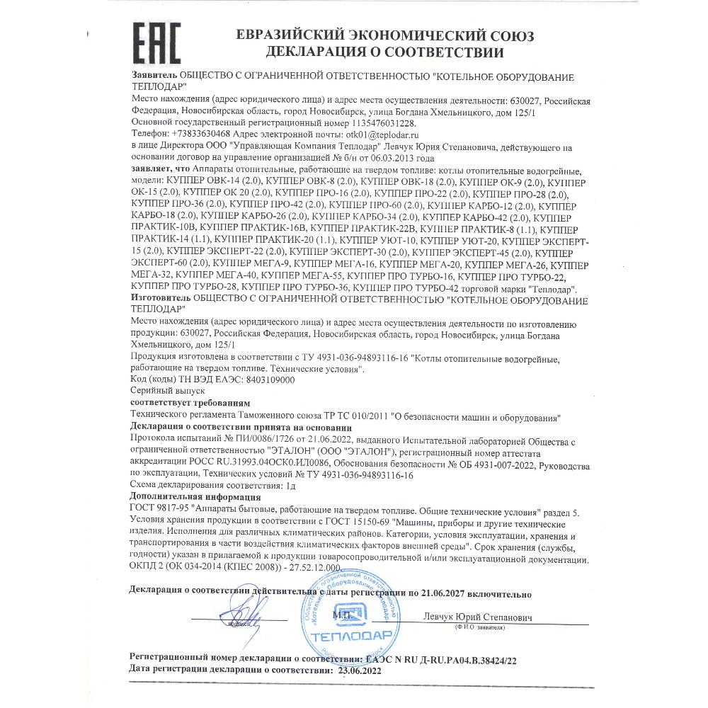 Котел твердотопливный Теплодар Куппер Карбо-34 2.0