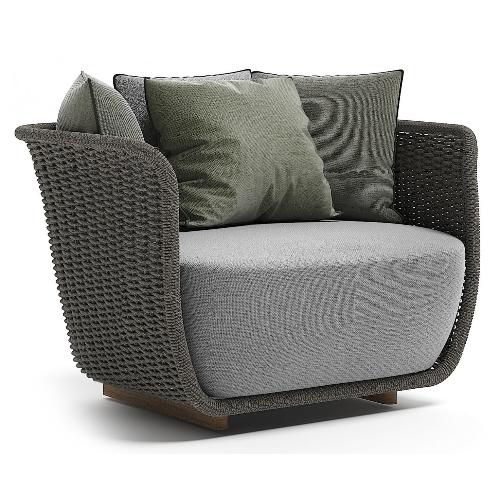 Bellagio переосмысливает концепцию вневременной элегантности с помощью современного дизайна и классических изогнутых форм. Алюминиевый каркас, окрашенный эпоксидной краской для использования вне помещений, термопластичный акриловый тефлон ручной работы из волокон, водостойкий и простой в уходе. Материал эластичен и приятен на ощупь, как текстильное переплетение, отличается устойчивостью к УФ-лучам и скоростью высыхания.