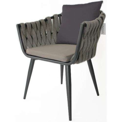 Уличное кресло с эргономичным и современным дизайном с алюминиевым каркасом и спинкой в плетении из роупа. Модель подходит для открытой террасы бара, ресторана, отеля или небольшого частного зимнего сада.