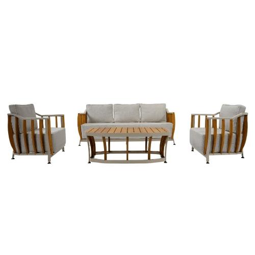 Стильный и функциональный лаунж комплект Storm - превосходное решение для создания уютного пространства для отдыха на свежем воздухе. Двойная структура, сочетающая металл и планки из ироко, создает гармоничное чередование линий и материалов, добавляя изысканности и современности вашему пространству. Легкий, но прочный алюминиевый каркас обеспечивает долговечность, а элементы из массива ироко придают мебели теплоту и благородство.