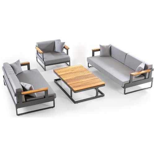 Selen представляет собой комплект, состоящий из кресла, 2-х и 3-х местных диванов, мягкие подушки которых обеспечивают удобство и комфорт во время сидения, и кофейного столика. Коллекция позволяет создавать бесконечные комбинации для зоны отдыха на открытом воздухе.