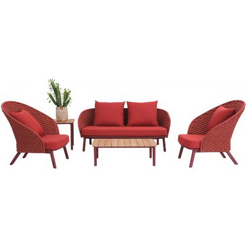 Ультрасовременный дизайн и высококачественные материалы объединяются в комплекте уличной мебели Mallow, создавая идеальную атмосферу для отдыха и развлечений на свежем воздухе. Легкий и прочный алюминиевый каркас, покрытый порошковым материалом, обеспечивает надежную поддержку и устойчивость к внешним воздействиям. Стильные и прочные столешницы из тика придают нотку природной элегантности. Подушки на диване и креслах покрыты высококачественной акриловой тканью, которая не только приятна на ощупь, но и устойчива к влаге, ультрафиолету и другим атмосферным воздействиям.