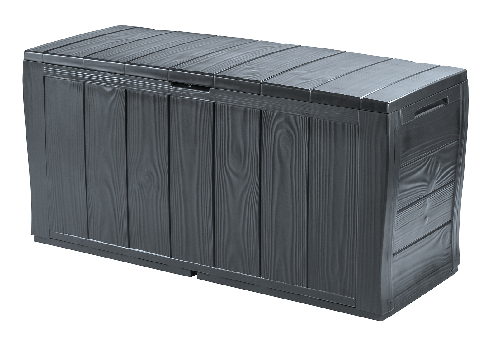 Пластиковый сундук Шервуд стилизован под дерево и имеет необычную форму, что выделяет его среди других сундуков KETER. Компактный и стильный уличный сундук Sherwood станет отличным функциональным и стильным решением для вашего участка.