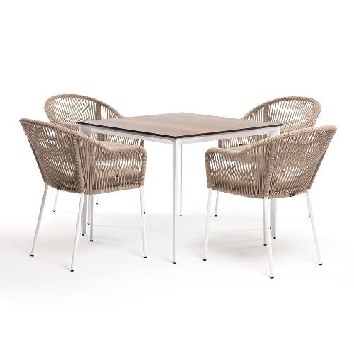 Обеденная группа 4SiS Малага на 4 персоны со стульями Лион, каркас белый, роуп бежевый