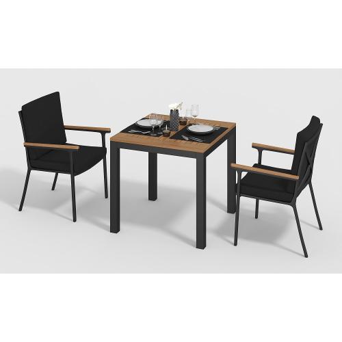 Цвет: каркас темно-серый карбон/ подушки черные/ столешница тик