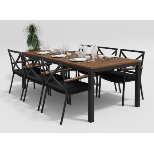 Цвет: каркас темно-серый / подушки черные / столешница тик