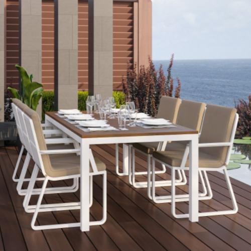 Цвет: каркас белый / подушки бежевые / столешница тик