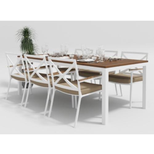 Цвет: каркас белый / подушки бежевые / столешница тик