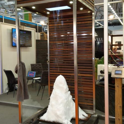 В таком случае, отличным решением станет установка снежного душа в помещении рядом с сауной. Само оборудование монтируется под потолок, а при включении начинается настоящий снегопад. При этом процесс обтирания снегом является приятным и очень полезным для организма. SNOWMACHINE MSK для производства снега предназначена для использования в СПА зонах, в режиме круглогодичной эксплуатации. Устройство работает в автоматическом режиме.