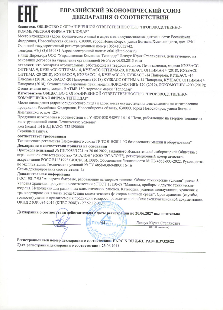 Инструкции, чертежи, документы - Отопительная печь Теплодар Батыр 150