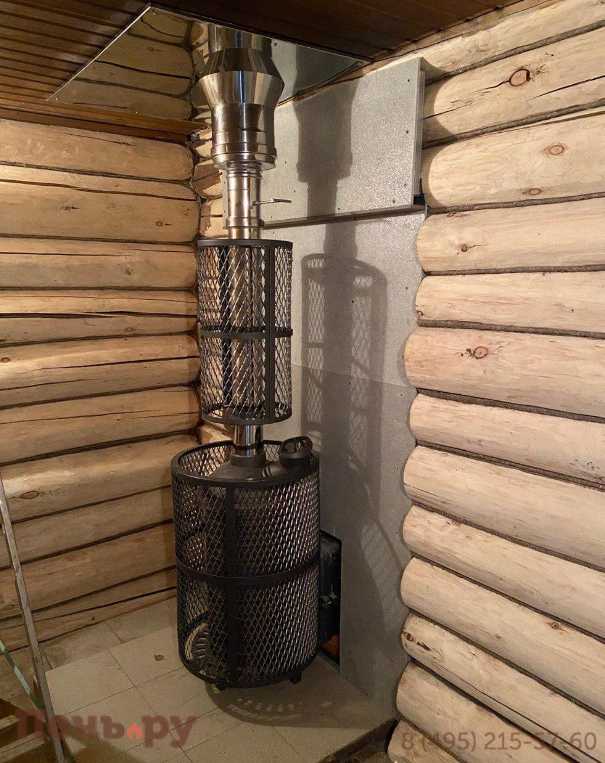 • Закрытая каменка, расположенная внутри топки позволяет провести нагрев камней до очень высоких температур. Камни находятся внутри корпуса каменки и нагреваются непосредственно пламенем равномерно со всех сторон.