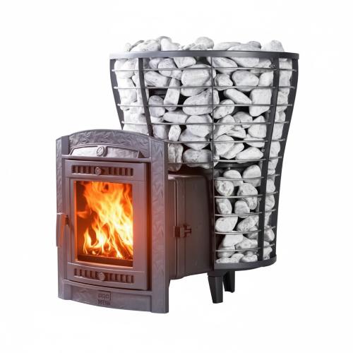 • Закрытая каменка, расположенная внутри топки позволяет провести нагрев камней до очень высоких температур. Камни находятся внутри корпуса каменки и нагреваются непосредственно пламенем равномерно со всех сторон.