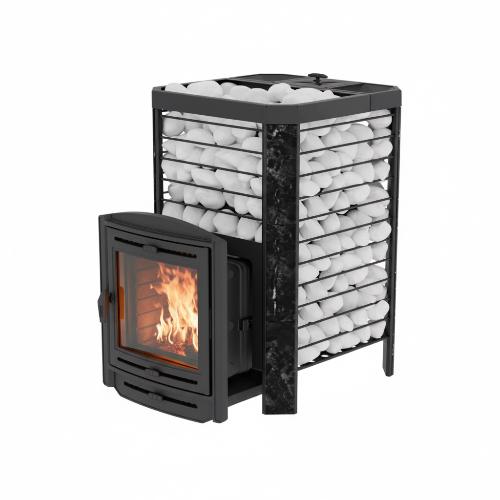 • Закрытая каменка, расположенная внутри топки позволяет провести нагрев камней до очень высоких температур. Камни находятся внутри корпуса каменки и нагреваются непосредственно пламенем равномерно со всех сторон.