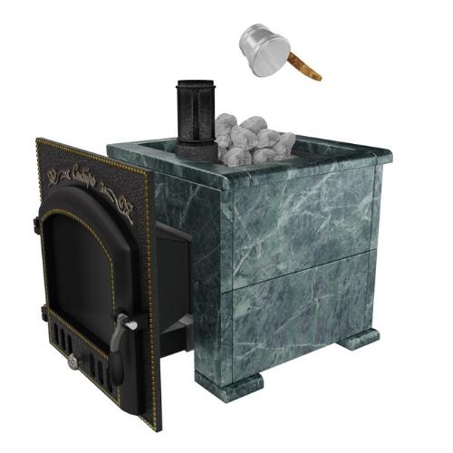 Премиальная банная печь НМК Сибирь-25 (дверка 700х700) в облицовке Оптима змеевик
