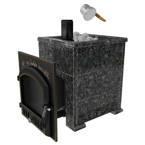 Премиальная банная печь НМК Сибирь-40 (дверка 700х700) в облицовке Оптима пироксенит