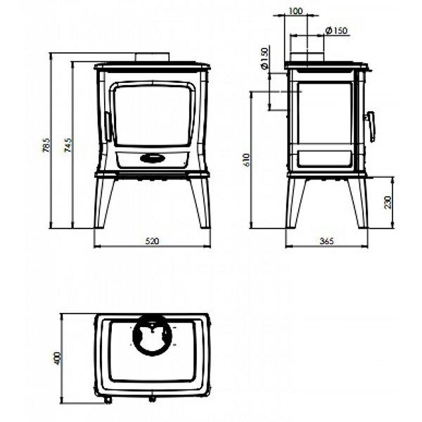 высота: 745 мм, ширина: 520 мм, глубина: 365 мм.